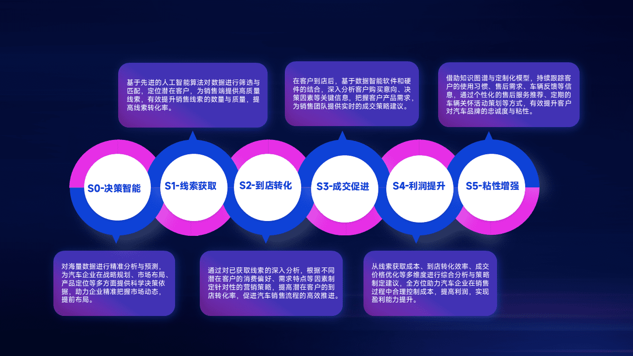 通过拓宽潜在客户来源、、、优化线索分配并提高到店转化率,,,以增强销售效率。。。同时,,,,利用线索数据不断优化分析模型,,,,有效提升转化率,,,扩大营销影响力。。。。